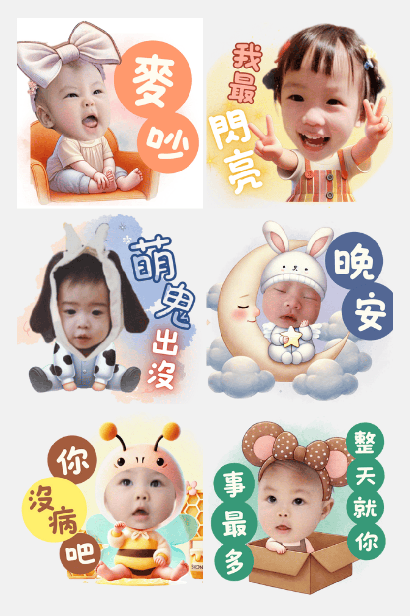 個性化設計,專屬紀念:根據每個寶寶的特質量身打造,成為家長和親友珍貴的回憶小物。不僅可愛,還充滿紀念意義,讓每張貼圖都獨一無二。